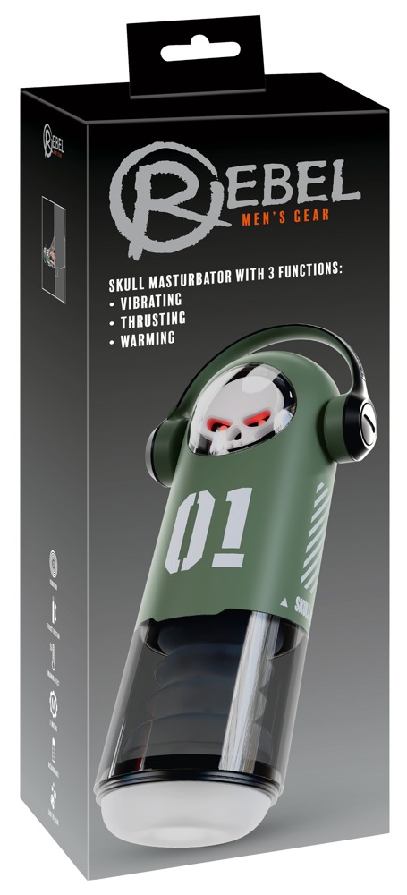 Handige SKULL masturbator met 3 functies van Rebel in een stijlvol schedelontwerp. Trakteert de penis op indringende vibraties rondom en een krachtige stootmassage. De warmtefunctie brengt de masturbator snel op de juiste lichaams- en bedrijfstemperatuur - en laat zijn ogen rood opgloeien. De perfecte combinatie van innovatieve technologie en uniek design. Voor onvergetelijke climaxen!