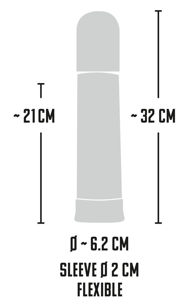 Lengte 32 cm, insteekdiepte 20 cm, Ø-huls 2 cm (rekbaar). ABS, TPE, polycarbonaten.