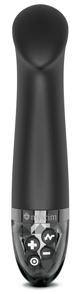 Handige vibrator Right on Ron E-Stim van Mystim met afgeplatte kop voor gerichte hotspot en intensieve intieme massages - alleen of als stel. 8 vibratiestanden en 5 E-voice standen zorgen voor veel variatie voor stimulatie. En als heel bijzondere functie is er een extra stimulatiestroomprogramma voor een perfecte training van de bekkenbodemspieren. Alles kan comfortabel met één druk op de knop direct op het speelgoed worden bediend - afzonderlijk of in combinatie.