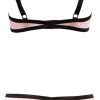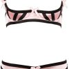 Set gemaakt van satijn met contrasterende details. Beugelverhoging met licht gevoerde cups en verstelbare bandjes. Haaksluiting aan de achterkant. Bijpassend slipje, open bij het kruis.