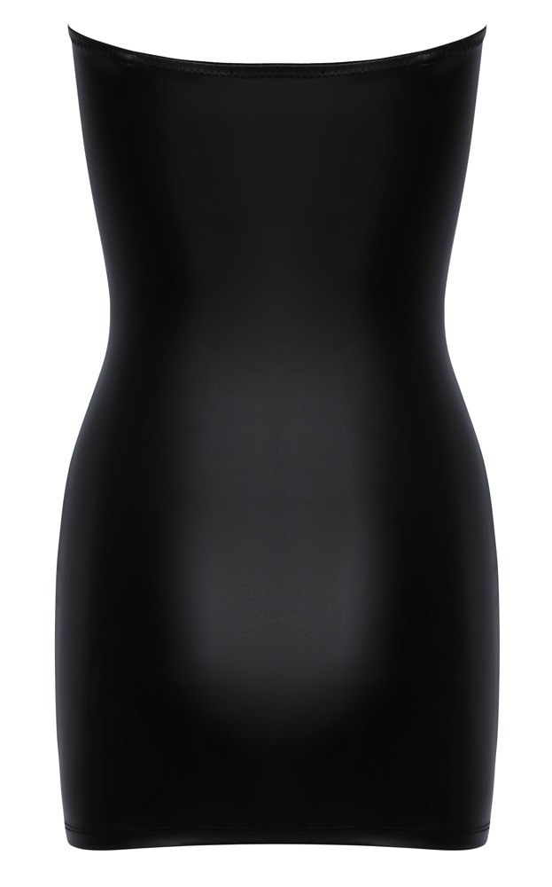 This short, strapless tube dress has an elegant black matte look. With a narrow cut and fitted with rose gold-coloured metal eyelets for the 2 decorative laces at the front in a womanly hourglass look. Soft and highly stretchy for high comfort.