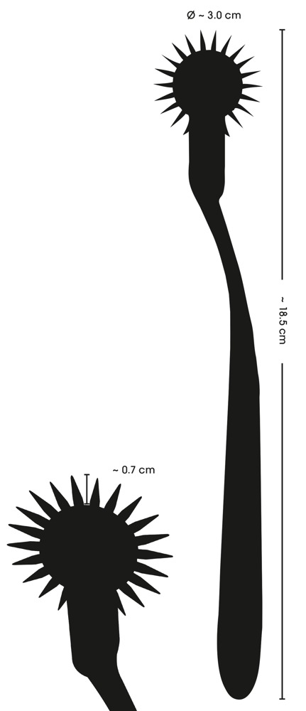 Zilverkleurig eenrijig zenuwwiel Silver Single Pinwheel uit de fetish collectie. Het wordt licht of met meer druk over de huid gerold en stimuleert zachtjes of geeft intense, plezierige pijn. Het hoogwaardige, robuuste wiel met zeer scherpe naalden kan overal op het lichaam worden gebruikt. Het lichtgewicht naaldenwiel met zijn ideaal gebogen handvat ligt prettig in de hand en is gemakkelijk te leiden.