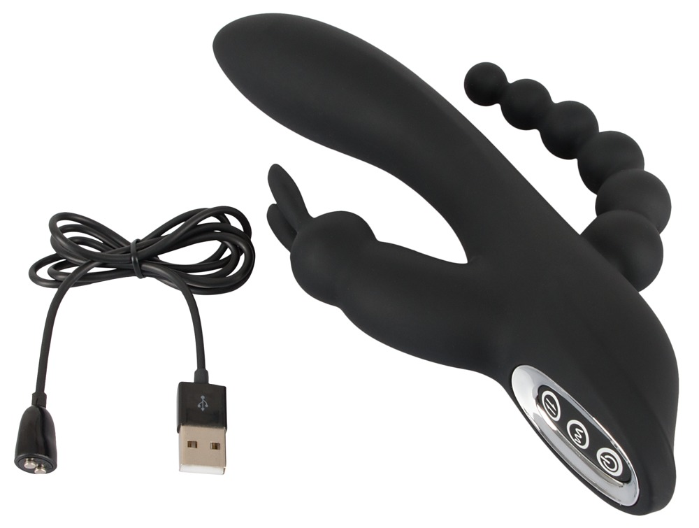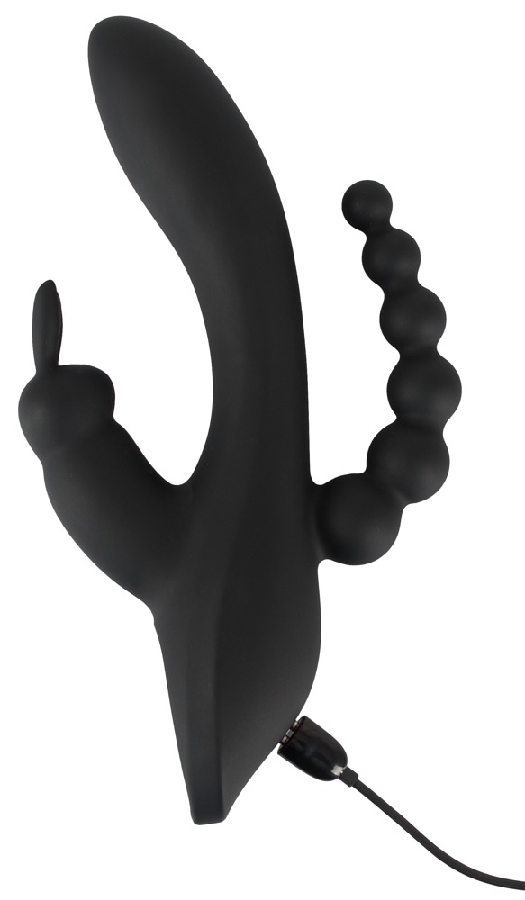 Vibrator met clitorisstimulator in bunny design en anusstimulator in bal design. 7 vibratiestanden in de gebogen schacht met G-spot tip en 3 vibratiestanden in de clitoris stimulator kunnen gemakkelijk afzonderlijk worden bediend met een druk op de knop. Deze allround verwenner is rondom bekleed met soft touch textuur en zorgt voor een zeer aangenaam huidgevoel tijdens het spelen en verwennen. Zelfs in een natte omgeving, want de vibrator is waterproof! Oplaadbaar - USB-kabel inbegrepen.
