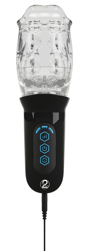 Handige roterende masturbator met een superzachte huls van STROKER met een aangegeven mondopening. De ultrazachte, flexibele transparante cup omcirkelt de penis met zijn zachte binnenste noppen en lamellen voor een intensieve massage. Automatisch genot in een klasse apart - leun achterover en geniet!