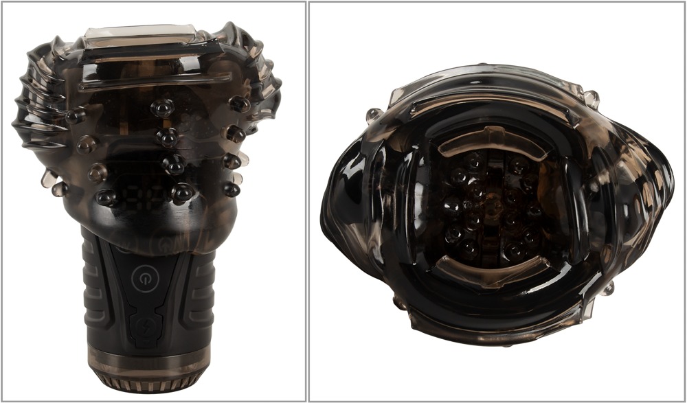 Handige Zuigende Masturbator met Dubbele Vibratie van Stroker met een intense zuigfunctie en 2 vibratiemotoren die de blowjob simulatie enorm intensiveren. De grijpzachte mondvormige opening en het rekbare zachte genotskanaal met flexibele nopjes en lamellen masseren de penis bovendien rondom. Fellatio gevoelens op hun allerbest!