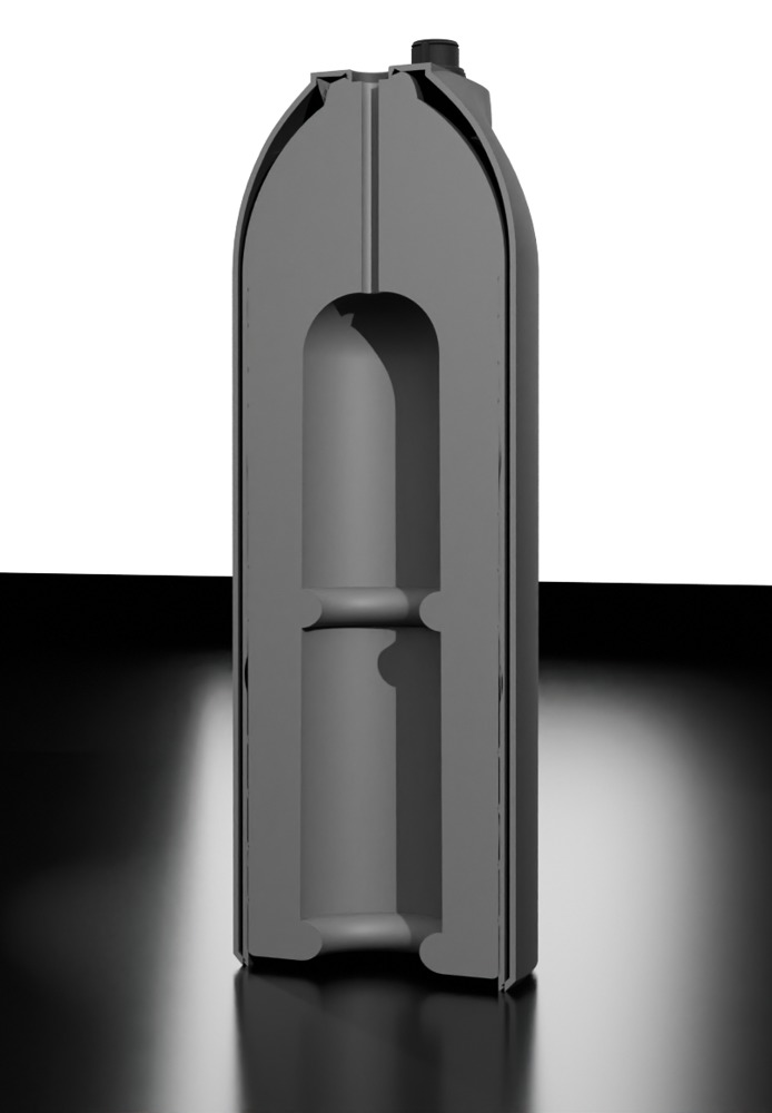 Mouw 21 cm lang, insteekdiepte 16 cm, binnen-Ø 2,7 cm (uitzetbaar), buiten-Ø 6,8 cm, wanddikte 1,5 cm.