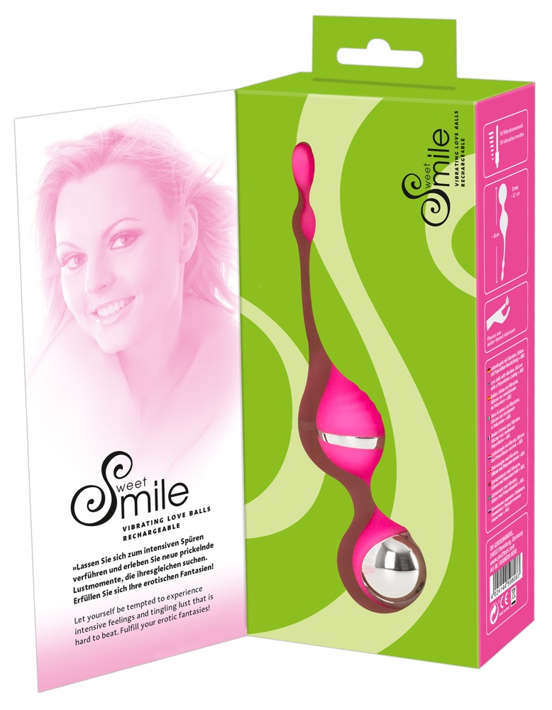 Dankzij de 10 krachtige vibratiestanden zorgen deze zijdezachte vibrerende Love Balls van Sweet Smile niet alleen voor extreem aangename stimulatie, maar trainen ze tegelijkertijd ook de bekkenbodemspieren. Voor meer seksuele sensatie en om incontinentie te voorkomen. Ook ideaal na een zwangerschap. Met een gewicht van 73 g, ideaal voor gevorderde gebruikers die al wat ervaring hebben opgedaan met love balls en nu hun bekkenbodemtraining naar een hoger niveau willen tillen. Met elastische retourband.