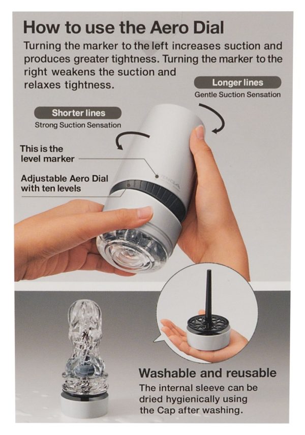Transparante masturbator in discrete designbehuizing met innovatief draaimechanisme om de zuigkracht in 10 niveaus te regelen voor een individuele blowjob-ervaring. Rechtsom draaien verhoogt de zuigkracht, in tegengestelde richting draaien verlaagt hem weer. De stimulatie-intensieve sleeve met spiraalvormige details en geïntegreerde penisring kan worden verwijderd voor eenvoudige reiniging, de behuizing dient dan als een praktisch hygiënisch droogrek.