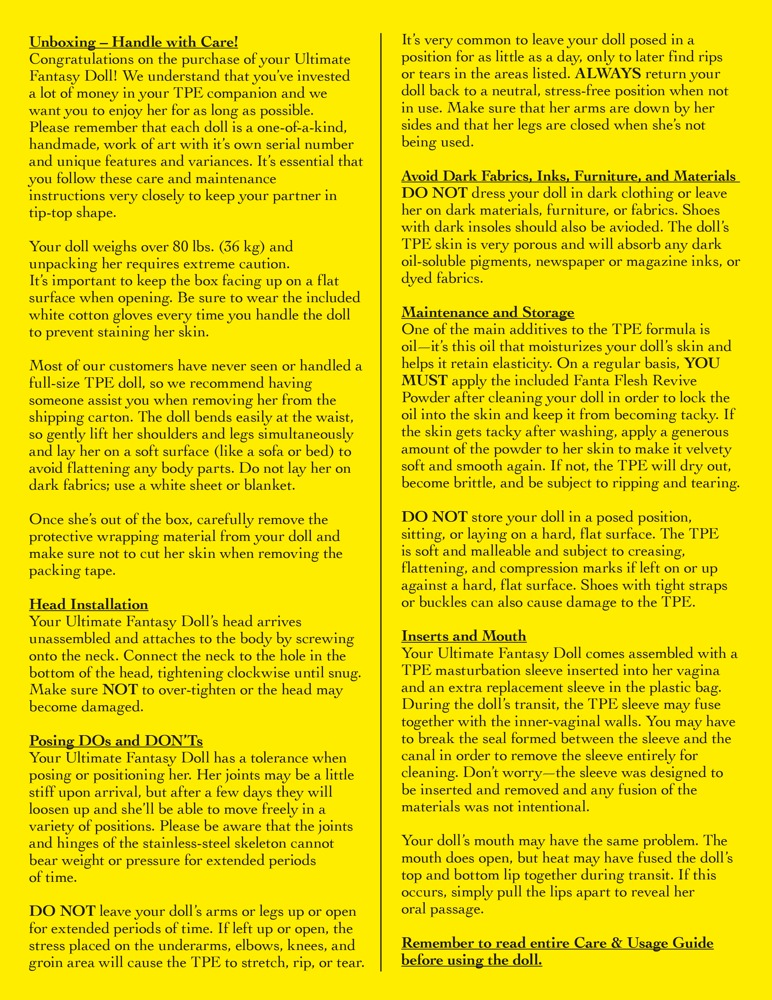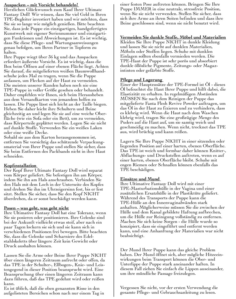 Deze levensgrote schoonheid is bijna niet van een echte vrouw te onderscheiden! Kitty heeft een 3D gezicht met levendige groene ogen, lange wimpers en volle lippen. Haar huid is gemaakt van hoogwaardig Fanta Flesh materiaal en voelt absoluut realistisch aan. De vagina, anus en mondopeningen voelen ook volledig realistisch aan. De schaamlippen zijn ook verleidelijk levensecht. De langharige blondine heeft een extra slank silhouet en ruime borsten met perfect gevormde tepels. De handen en voeten zijn overtuigend gedetailleerd, tot en met de gemanicuurde vingernagels. Een aluminium skelet binnenin maakt Kitty beweegbaar van top tot teen. Met bouten op haar voetzolen kan de blondine zelfstandig staan. De liefdespop wordt geleverd met een groot aantal accessoires: