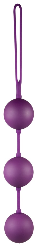 Paarskleurig liefdesbolletjestrio met swingende vibroball-interieur en keerlus. Geschikt voor gevorderde training van de bekkenbodemspieren.