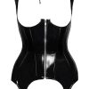 Deze bustless vinyl jarretel chemise van Black Level in glanzend zwart zet uiteraard de boezem in de schijnwerpers, die mooi ondersteund wordt dankzij de ingewerkte beugels. Ingebouwde vormstaven zorgen bovendien voor een perfecte pasvorm en de variabele vetersluiting aan de achterkant is een echte blikvanger - net als de vetersluiting in de geraffineerde kraag. Aan de voorkant is een ritssluiting over de hele lengte aangebracht om het aan- en uitkleden te vergemakkelijken. De bretels zijn in lengte verstelbaar om te passen.
