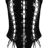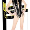 Extravagant body from Black Level completely in black vinyl. Tight-fitting and tailored to the neck with high leg cut-outs. The front has 3 open laces that can be individually adjusted to fit. The central lacing goes through the crotch to above the bottom. Zip fastening at the back and press stud fastening at the back of the neck.
