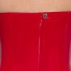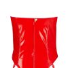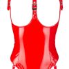 Bustless bodysuit van Black Level volledig in vuurrode lakglans. Met uitnodigend open kruis en verstelbare en afneembare bretels. Bewerkte beugel voor een optimale borstvrije pasvorm. 3 verstelbare decolletébandjes leiden naar de kraag met drukknoopsluiting. Praktische rits- en drukknoopsluiting op de rug.