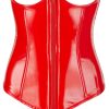 Deze busteloze lakcorsage van Black Level in elegant rood is het ideale podium voor de boezem, die mooi wordt ondersteund dankzij de ingebouwde beugels. Voorgevormde staven in de corsage zorgen voor een perfecte pasvorm en de variabele vetersluiting op de rug is een echte blikvanger. De outfit wordt gecompleteerd door de bijgevoegde rode vinyl string.