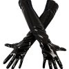 Lange handschoenen van Black Level in zwarte lakglans. Met stretch inzetstukken voor een perfecte, dicht-op-huid en toch comfortabele pasvorm.