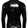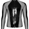The extravagant black long-sleeved shirt from Black Level is made out of shiny vinyl with exciting transparent net inserts. With a stylish stand-up collar and full-length, 2-way zip at the front. The stretchy material clings to the body and is very comfortable to wear.