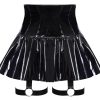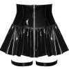 Zwart vinyl minirokje van Black Level met verleidelijke jarretelbandjes en dijbeenbandjes. Koket uitlopend met een extra hoge, tailleaccentuerende tailleband. Er is een metalen ritssluiting over de hele lengte aan de achterkant. De jarretelbandjes met ring aan de voorkant en de dijbanden zijn stevig vastgenaaid in de rok. De zachte, elastische jarretelbandjes en bandjes zitten comfortabel.