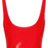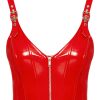 Aansluitende top van Black Level in felrode lakglans. Geïntegreerde vormgevende staafjes voor een perfect aansluitende pasvorm. Metalen ritssluiting over de hele lengte aan de voorkant. De bandjes zijn verstelbaar met decoratieve gespen.