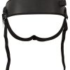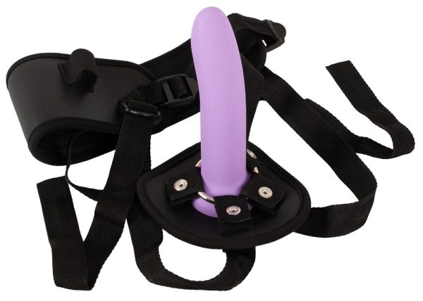 Een van de dildo's wordt met zijn zuignap in de twee voorste ringen van het strap-on harnas geschoven met behulp van de drukknopen - snel en gemakkelijk. De gevoerde voorkant en de padding in het ruggedeelte zorgen voor een hoog niveau van comfort. De grootte van de textielbanden kan op veel plaatsen worden aangepast met de verstelschuifjes voor een veilige, slipvrije pasvorm: