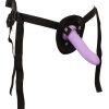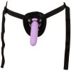 Dildo M (paars): 17 cm lang, inbrenglengte 15,5 cm, Ø 3,6 cm.